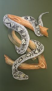 working at various Art studio positions. She now has a studio at her